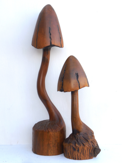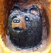 Vern has been carving off and on for more than 30 years, for his own pleasure. He has done soapstone sculptures displayed in galleries and has carved wood into elegant designs based on birds and woodlands. But he has also often taken a lighthearted approach to creating whimsical or comical features for patios or gardens.