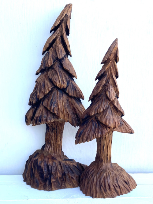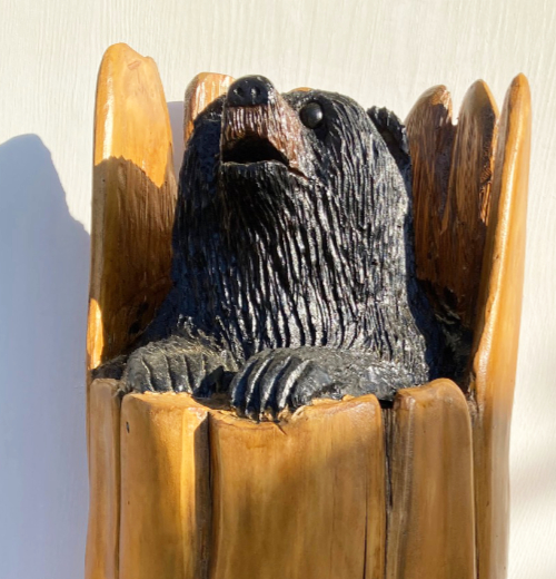 An ardent fisherman himself, Vern has carved leaping salmon in many positions. For popular carving, he has settled recently on a simple but elegant style perfect for wall mounting. If you would like, he can carve a “fisherman’s brag” just for you — making your fish to the dimensions of your Most Amazing Catch.